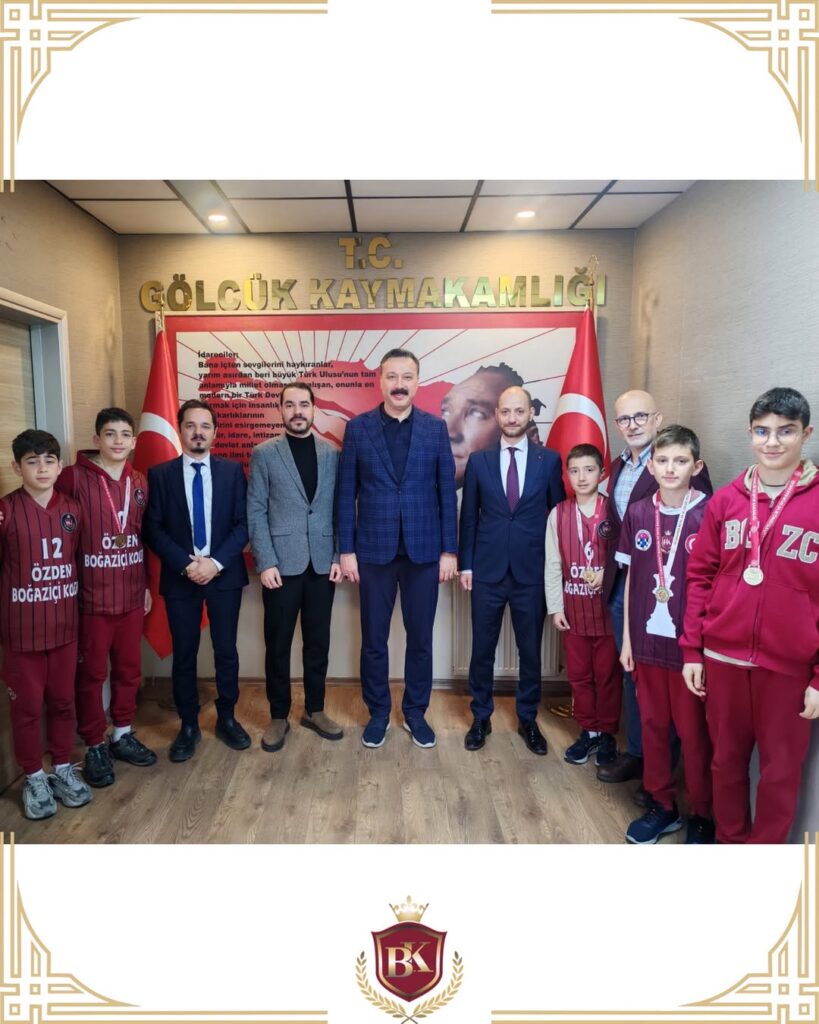 Özden Boğaziçi Koleji olarak, öğrencilerimizin yüzme branşında üç farklı stilde elde ettiği Bölge Birinciliği, basketbol branşında Türkiye Yarı Finalleri’ne yükselme ve satranç branşında kazanılan Bölge Birinciliği başarılarının ardından, Gölcük Kaymakamı Sayın Müfit Gültekin’i makamında ziyaret ettik. Gerçekleştirilen ziyarette, öğrencilerimizin sportif alanlarda göstermiş olduğu üstün performans ve elde edilen başarılar hakkında bilgi paylaşımında bulunulmuştur.